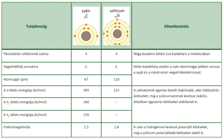 Ø az összes elem közül csak a szén atomjai képesek egymással korlátlan mennyiségben/hosszúságban összekapcsolódni